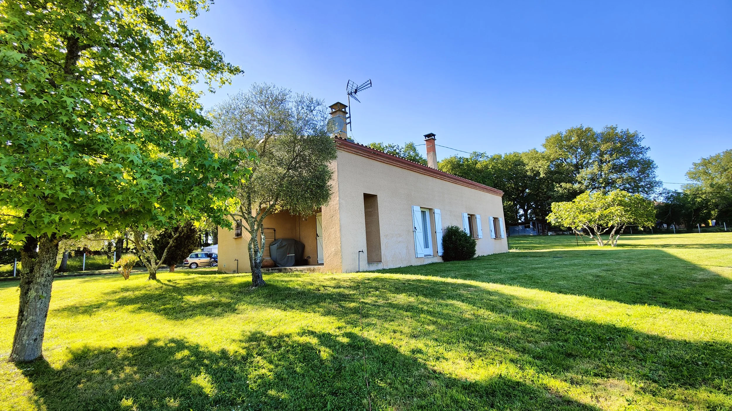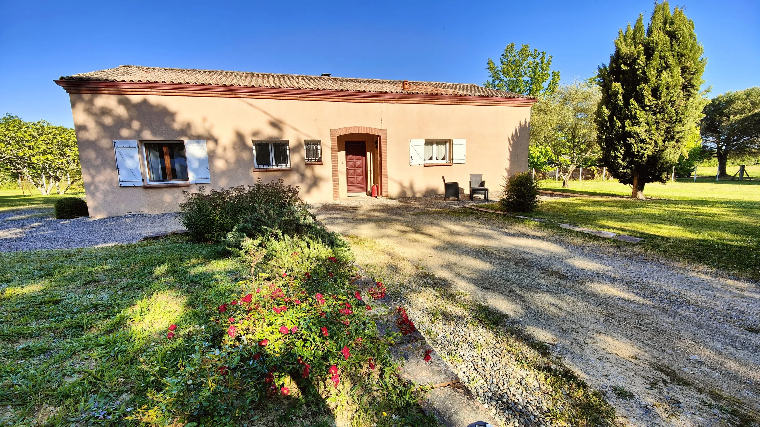 Maison - 4 pièces - 100,39 m² Maison - Venez découvrir cette maison de plain-pied édifiée en 1991 de type 4 de 100,39 m² habitables auxquels s'ajoutent des combles non aménagées, un abri de jardin le tout sur un beau terrain constructible de 2 000 m², située parfaitement au calme sur la commune de PUJAUDRAN (32) à la sortie de LEGUEVIN (31) ! Cette maison de plain-pied comprend : - Une entrée de 7,65 m², un séjour-salon disposant d'une cheminée donnant sur une cuisine ouverte de 37,38 m², un cellier trois chambres de 9 m², 10,50 m², 11,73 m², une salle de bains (à aménager) de 5,40 m², une salle d'eau de 2,80 m², un WC - Une terrasse couverte avec un barbecue